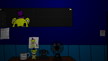 this game is an unfunny fnaf fangame where, fredboi (knock off of fredbear) tries to spook you along with his friend hooty the owl.
